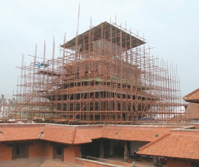 ネパール・カトマンズの九層神殿の保護・修復は、中国政府の進めるネパール地震後再建支援の重点プロジェクト。中国の文化財保護従事者は文化財に対し「最小限の干渉」にとどめ、九層神殿の完全性を保障し、この世界文化遺産の「魂」を復元し、元の姿をよみがえらせている。人民日報海外版が伝えた。